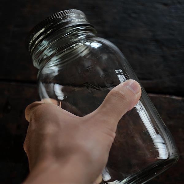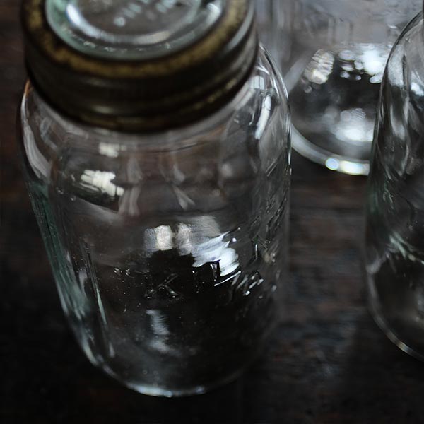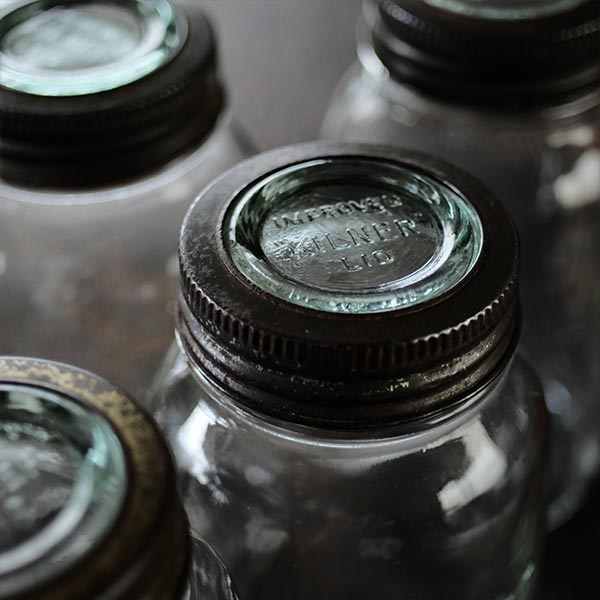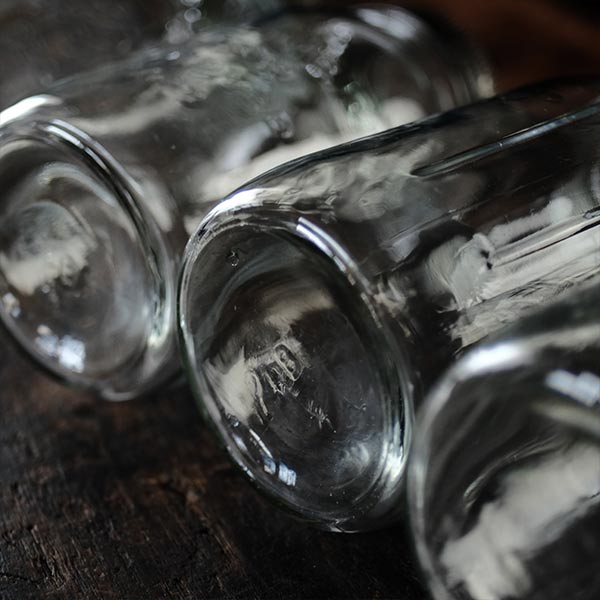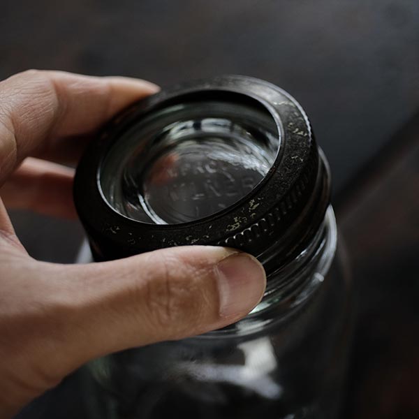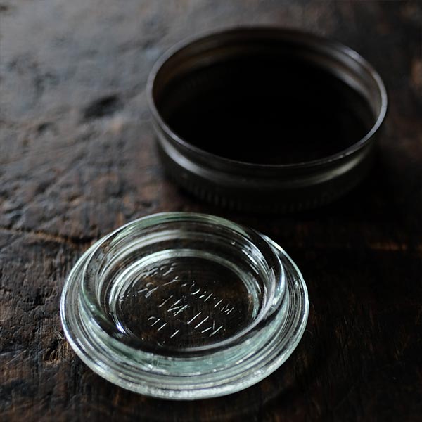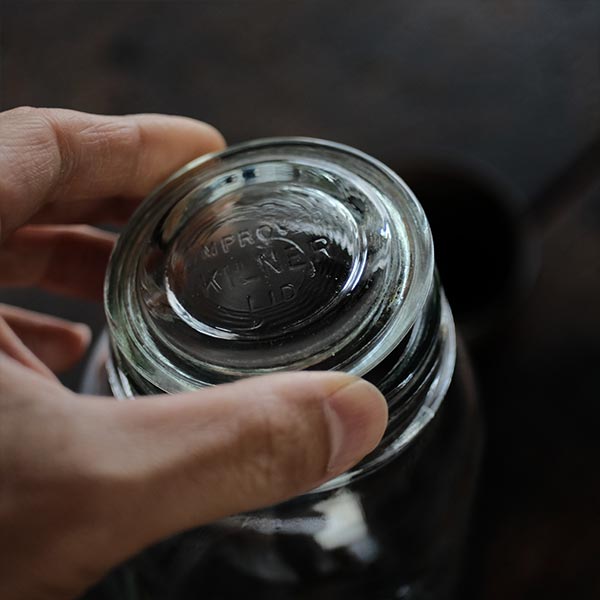 現在Kilnerのメイソンジャーは、Ballなどと同じく「薄い金属の蓋+リング」という構造の蓋が使われていますが、Improvedシリーズはガラス製の蓋を金属のリングで締めて留めるタイプとなっております。