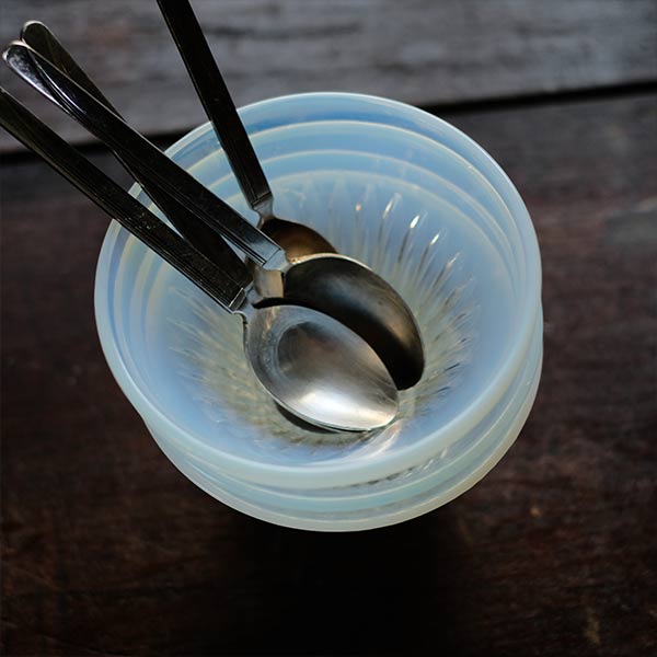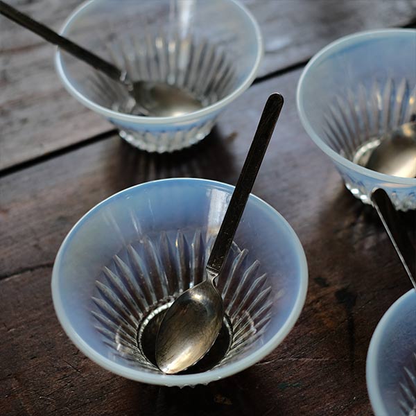かき氷やアイス、ヨーグルトなどなどデザート用に。味のあるガラスの質感とともに、お楽しみいただければ幸いです。
