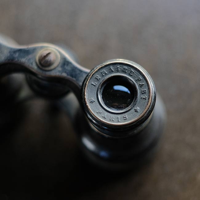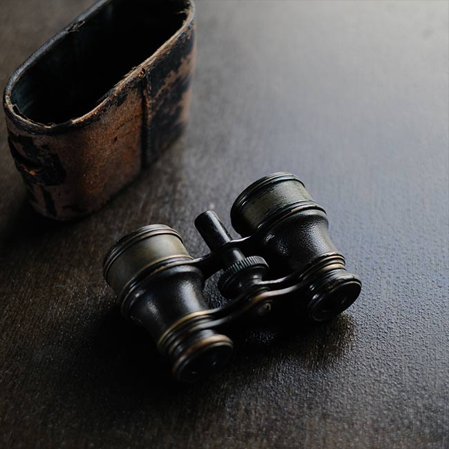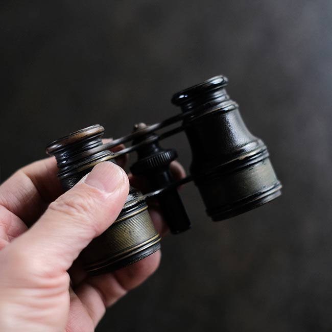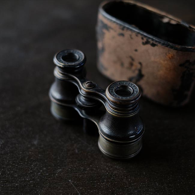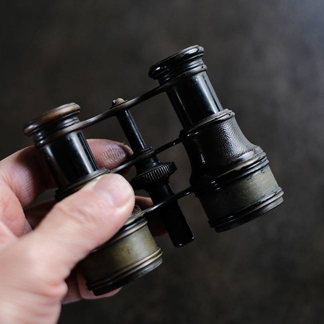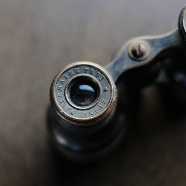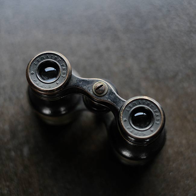 フランスLemaire Fabtのオペラグラスになります。古びた真鍮の鈍い色と黒のバランスが絶妙ですが、1940年代以前のものでしょう。強い緑青もなく、わりと良い状態をキープしております。