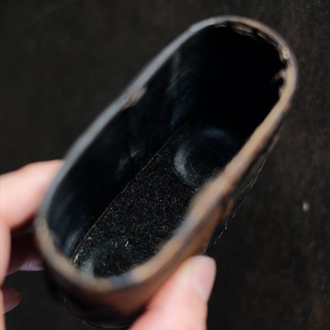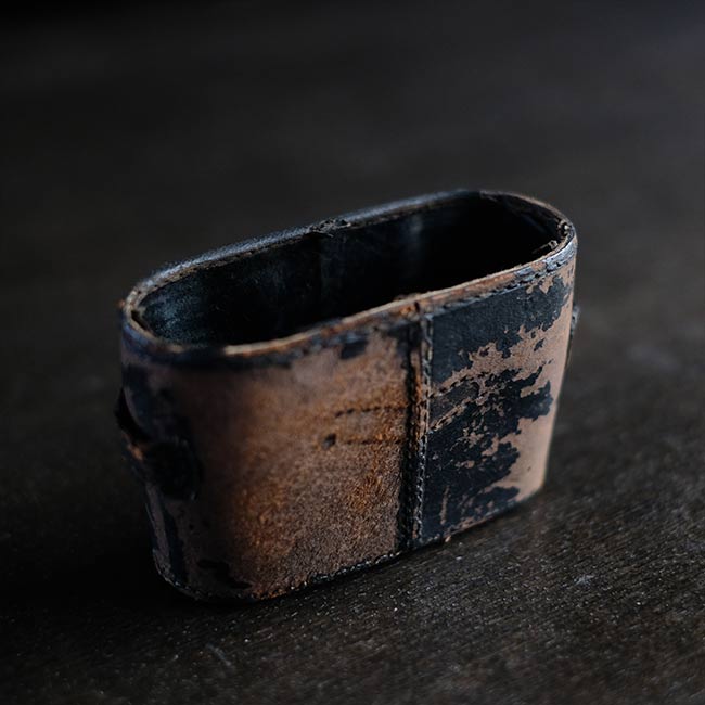その他、傷やくすみが残ります。またレザーケースは蓋が欠損しているのと、表面がかなり剥がれていますので、ご了承下さい。