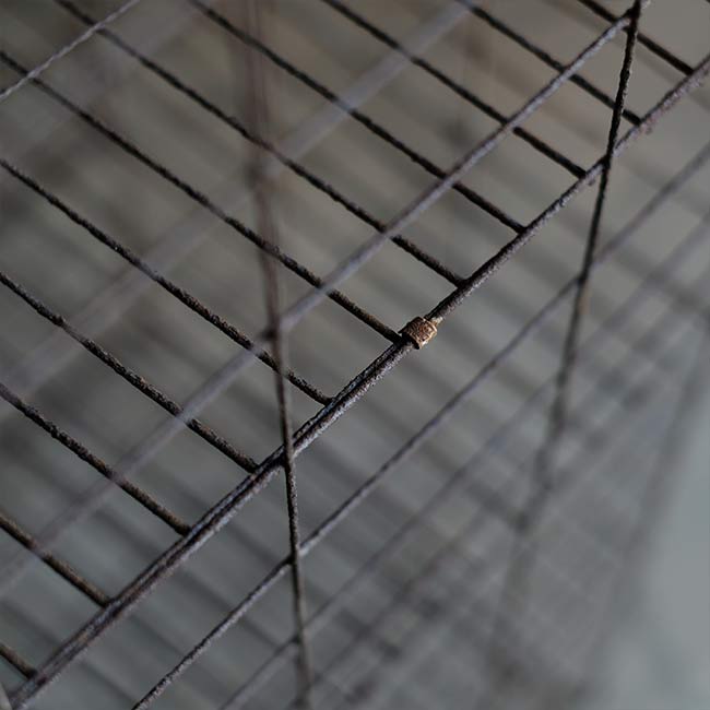 ワイヤーはサビで覆われていますが、軽いものなら載せることも可能です。高いところから吊ったり、あるいは横向きにして置いても使えるので、ショップ様には商品のディスプレイにも。使い方によっては、卵の受け部分はカットしていただいてもよろしいかと。