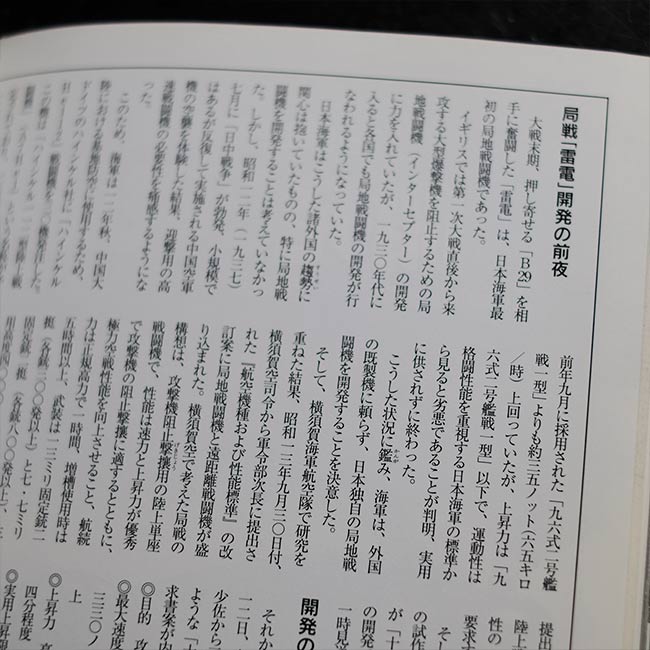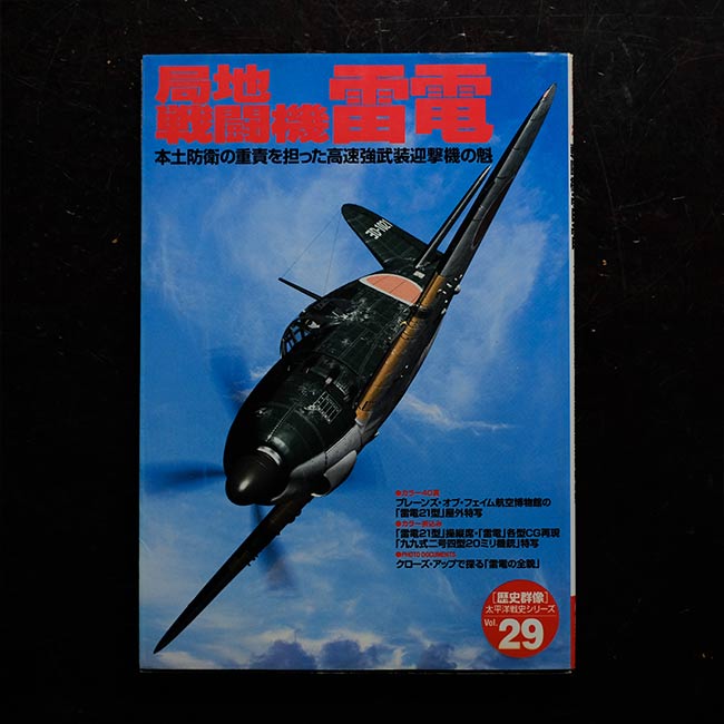 最初の46ページまでは、唯一アメリカに現存する雷電をフルカラーで紹介。さらに雷電の各モデル、開発話、エンジンやデザインの詳細を当時のモノクロ写真や資料を交えて徹底解説。情報量が非常に多く、これ一冊で雷電の全てがわかると言っても過言ではないでしょう。