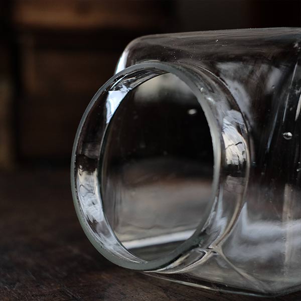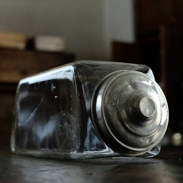 かつて駄菓子屋使われていた、細長いガラスの菓子瓶です。