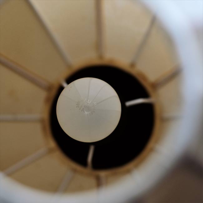 「ド」がつくほどエスニックな照明ですが、強い主張がないので、わりと幅広いテイストのインテリアにあわせられるのではないかなと。プラグとコードは新品に交換。電球はE26を使用(別売り)。