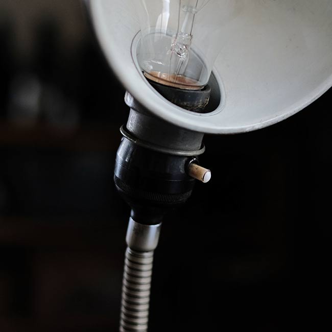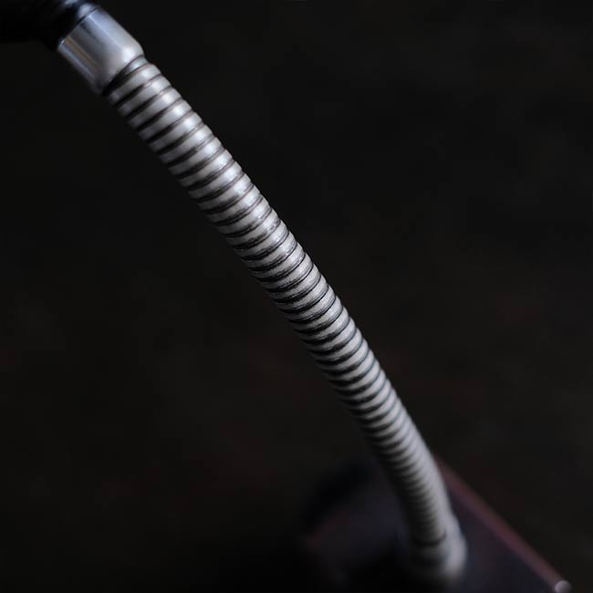 コードとプラグは新品に交換。使用する電球はE26(別売り)。グースネックなので、角度調節は自由自在です。
