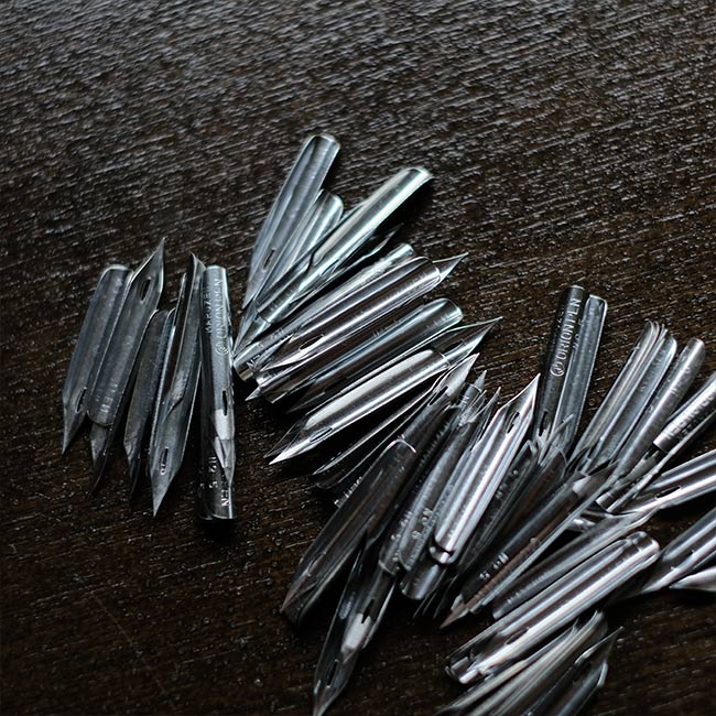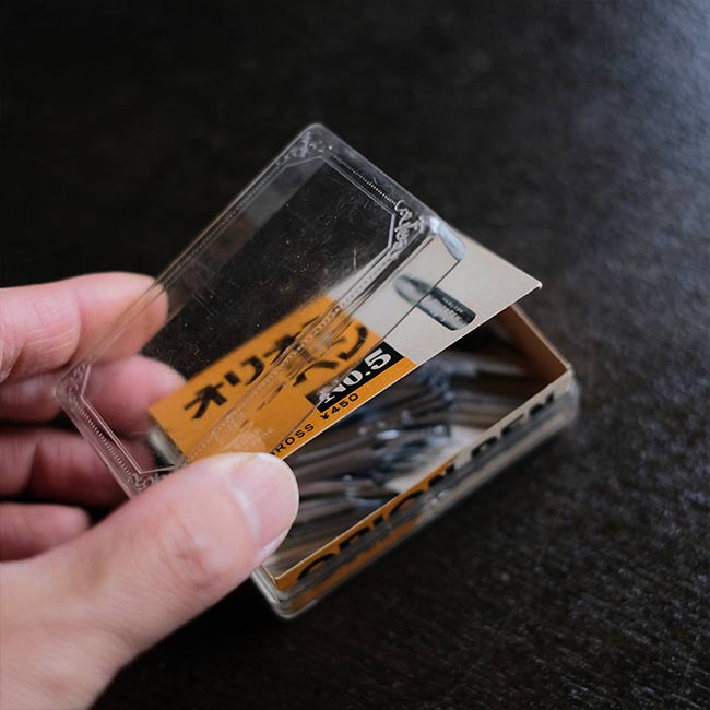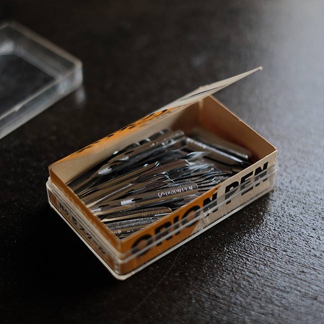 漫画や美術作品の製作などに使われるつけペン用のペン先になります。たぶん81本入り。パッケージに「1GROSS」と書いてあるので、半分近く使っている様子です。ケースに多少小キズはありますが、ペン先は非常にキレイな状態です。中身を入れ替えて、小物用ケースにしてもいいかもしれません。