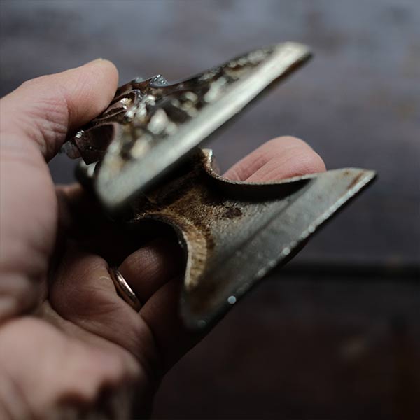 重さ200グラムをこえるメタルのゴツいクリップ。用途、年代、まったくわかっておりませんが、ゴツいわりに挟む力は意外と弱めです。