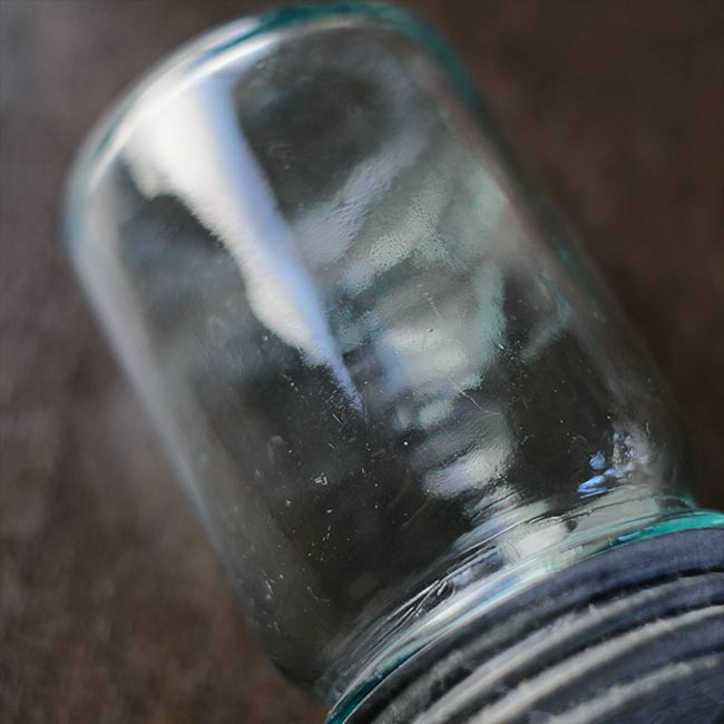 蓋はBall製に交換されておりますが、ガラスのコンディションは良好で、多少小キズが見られる程度。蓋はくすみ等見られますが、内部の白サビは磨き落としました。