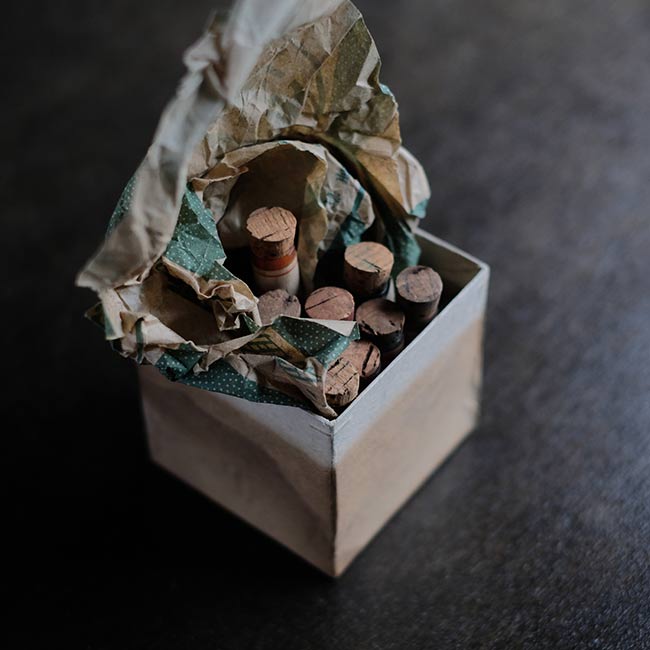 コルクが折れてしまうのがこわいので、1本1本コルクを外しての中身の確認は行っておりません。なおラベルにシミや薄汚れ等ありますことをご了承下さい。箱に立てても、並べてディスプレイしてもよさそうです。古紙と紙箱もセットとなります。