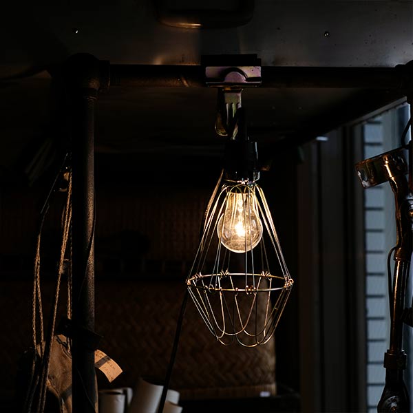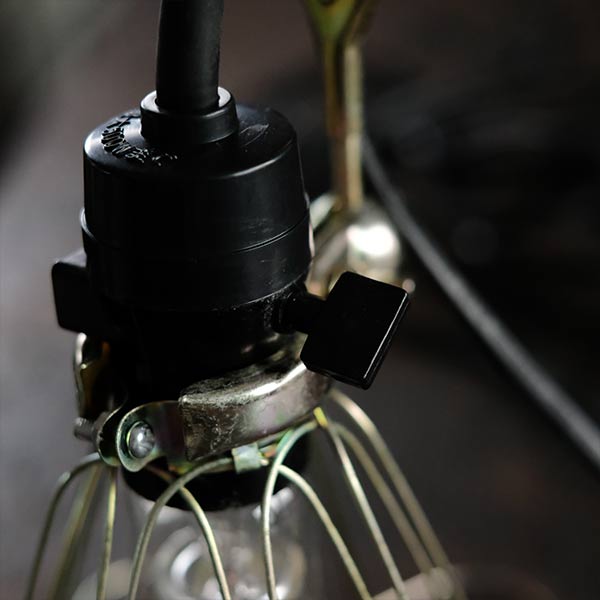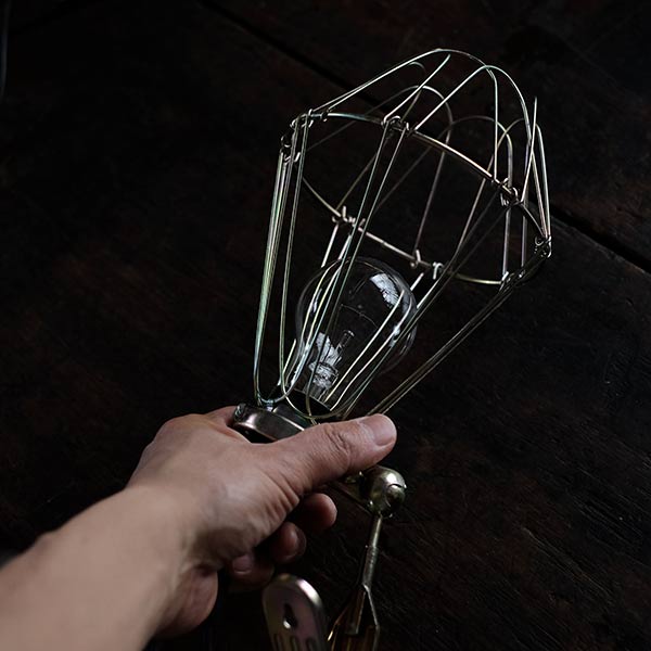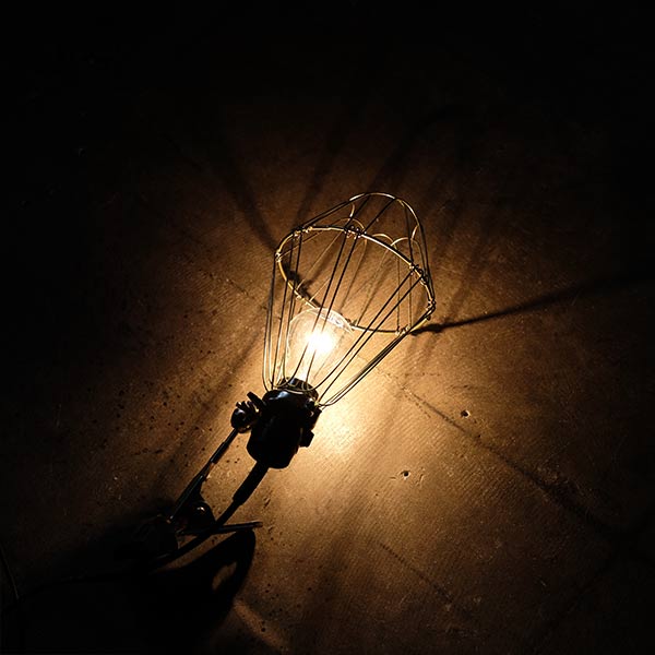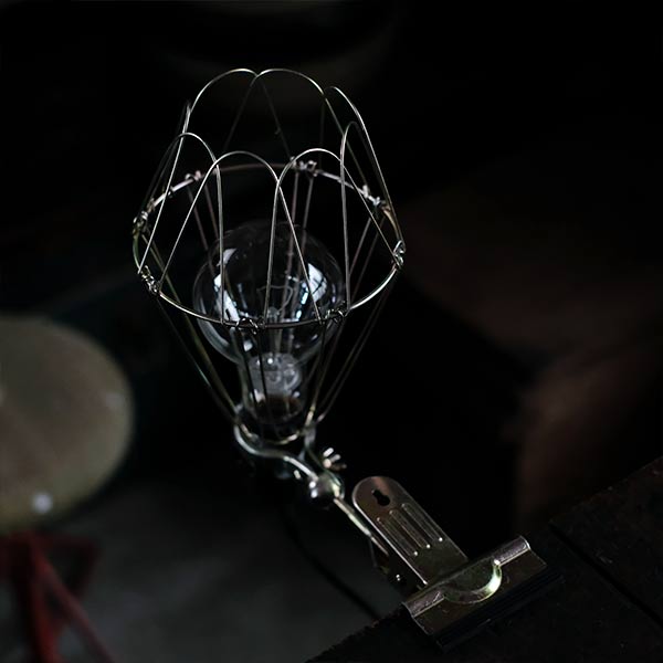 余計な装飾が一切省かれた質実剛健な作業灯。作業現場などで使われるワークライトです。さほど古いものではありませんが、未使用のまま残されていたストックがまとまって入荷しました。メーカーはキタムラ産業になります。