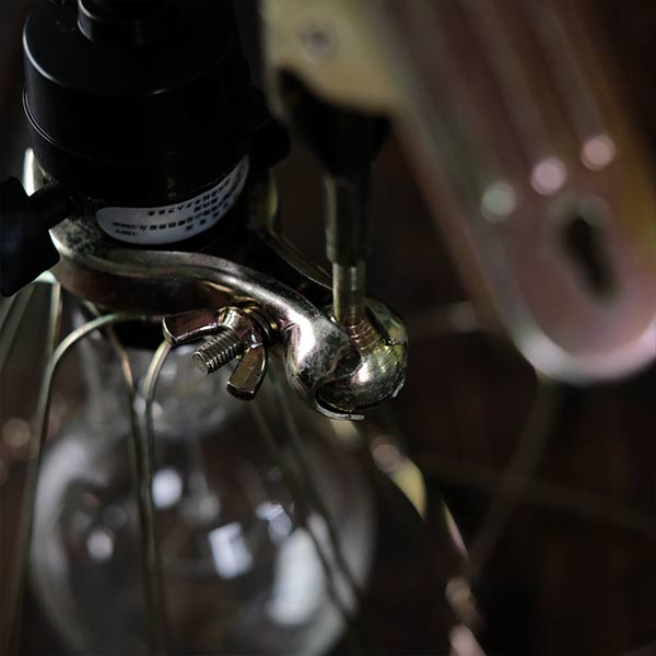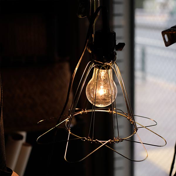 屋内用で、水濡れは厳禁。口金はE-26。付属の電球は200Wで明るいため、撮影では40Wの電球に付け替えております。商品はパッケージに入った状態で送らせていただきます。