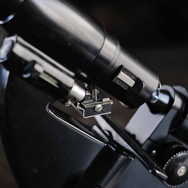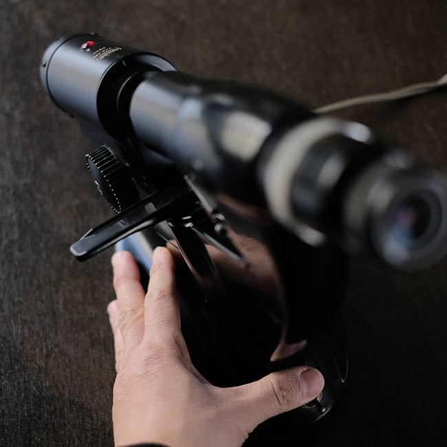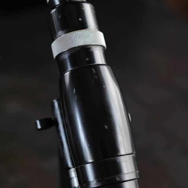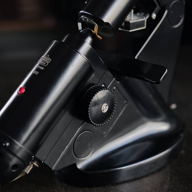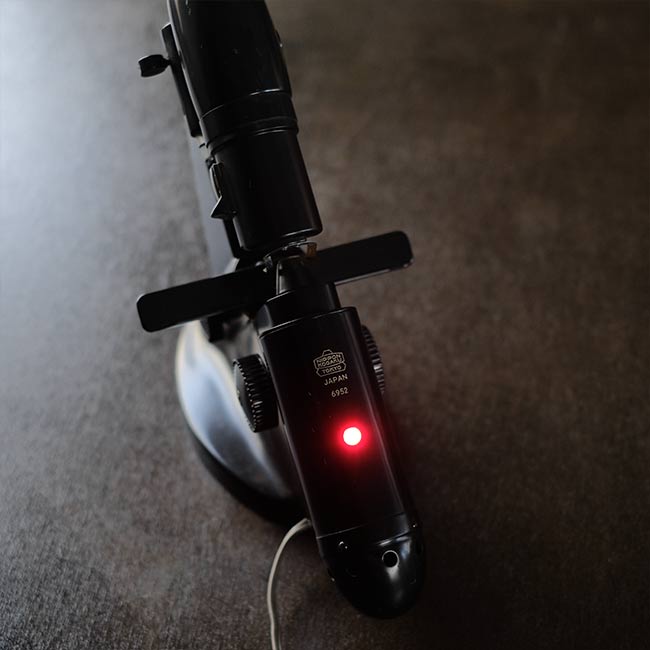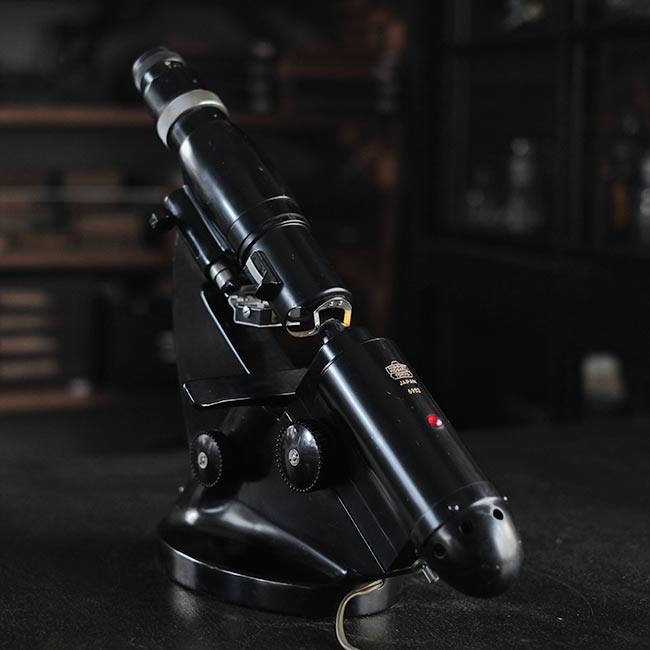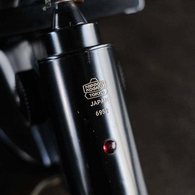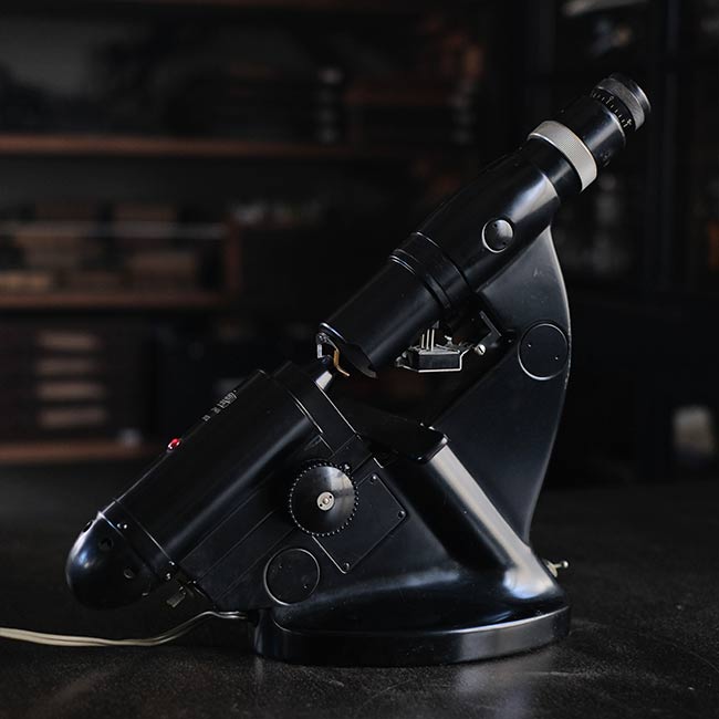 眼鏡のレンズの度数を測るのに使われる計器になります。眼鏡店などで使われていたものと思われますが、1960年代以前のもので間違いないでしょう。ロゴは「NIPPON KOOGAKU」となっていますが、その後「NIKON」となり、さらに時代が下がるとカラーが黒からアイボリーになったようです。