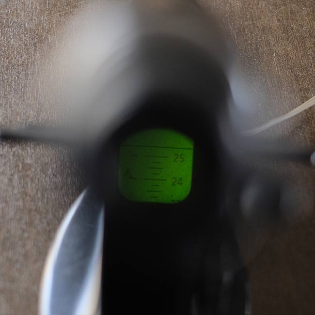 実用できるかどうかの判断ができませんが、レンズをのぞくと目盛りが見えており、電源を入れると点灯。ノブの回転も問題ありません。なお小キズやくすみ、落とせない汚れ等見られますことをご了承下さい。