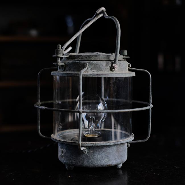 1958年製の日本船燈の船舶照明。希少な360度ガラスのタイプで、さらに数の少ない小さなサイズの一品です。