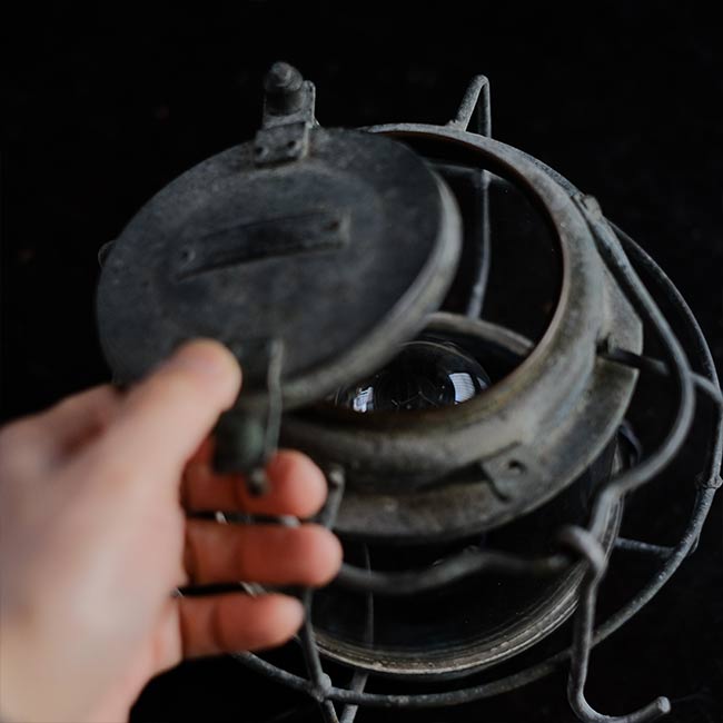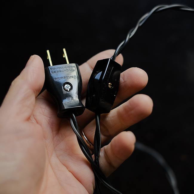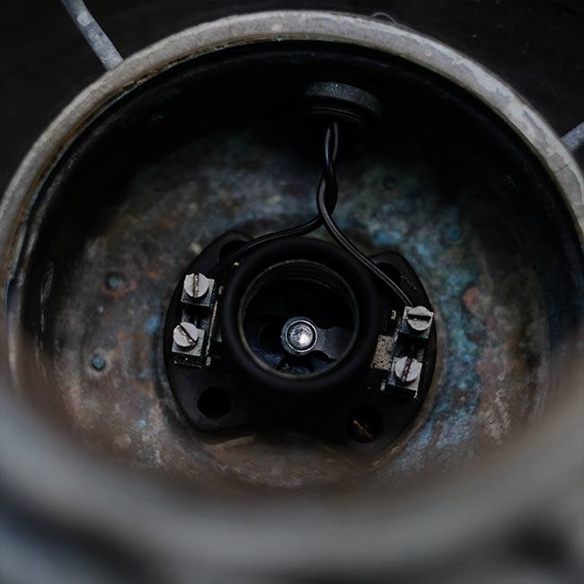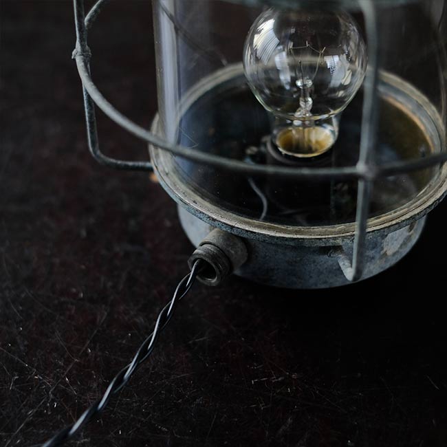 使用する電球はE26で、交換の際はトップのネジを外して蓋を開けます。コードとプラグは新品に交換済みですので、電球をご用意いただければこのままお使いいただけます。置いてよし、吊り下げてもお楽しみいただけます。