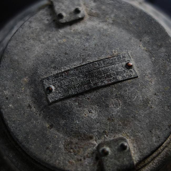 本体は真鍮で、表面は白っぽく経年し、ところどころ緑青も見られますが、強く磨くことはせず、表面のクリーニングにとどめております。