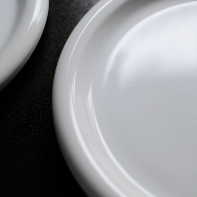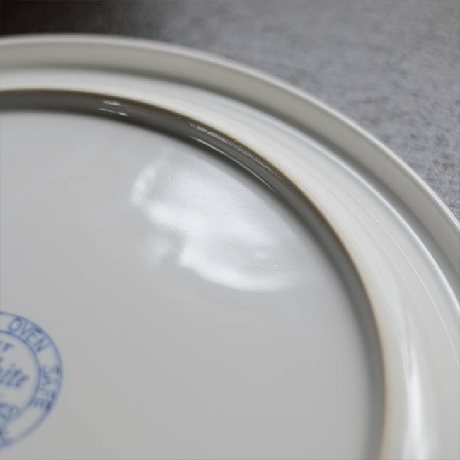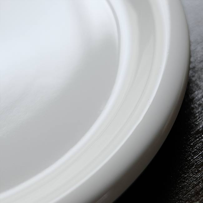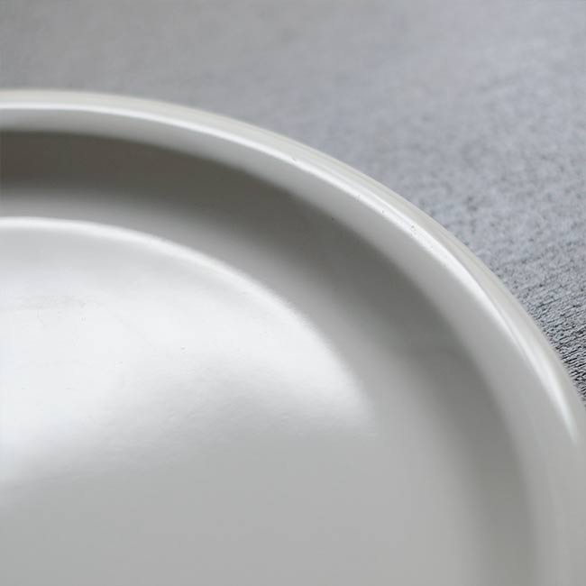 カラーはオフホワイト。リムは丸く盛り上がっていて、内側は平らなつくり。直径は27cmありますので、メインプレートから取り皿、おかずの盛り付け、ワンプレート等など、幅広く使えます。なお電子レンジがご使用いただけます。