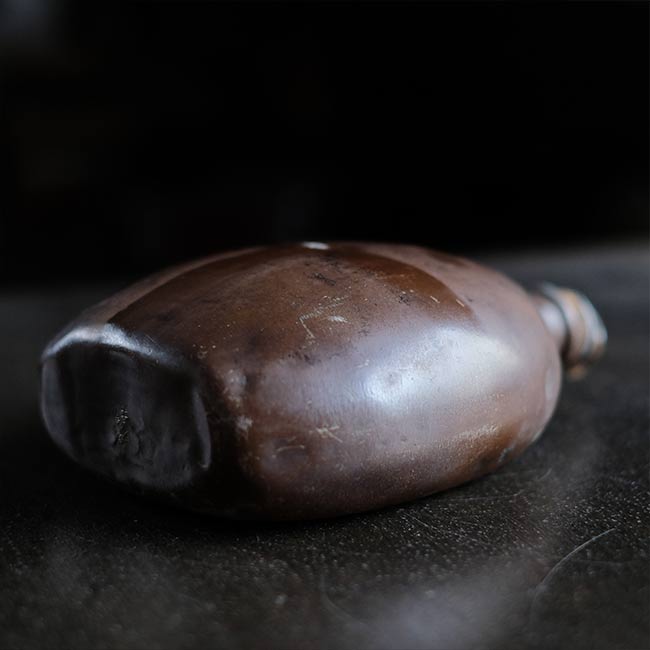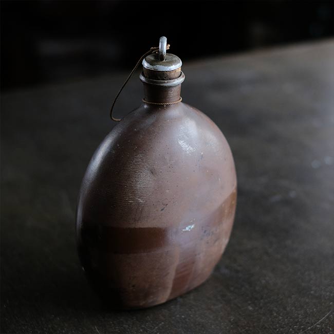 久しぶりに日本軍の古い水筒が入荷しました。底には「昭十八」の文字が読み取れるので、第二次大戦後期のものになります。本体はアルミで、キャップはコルク。