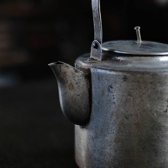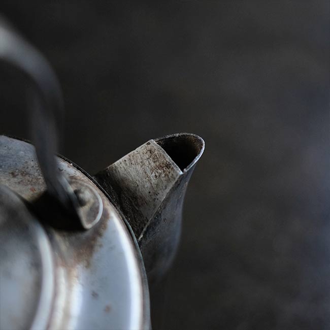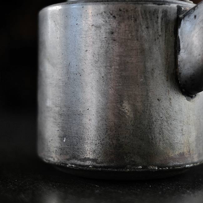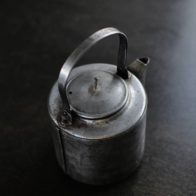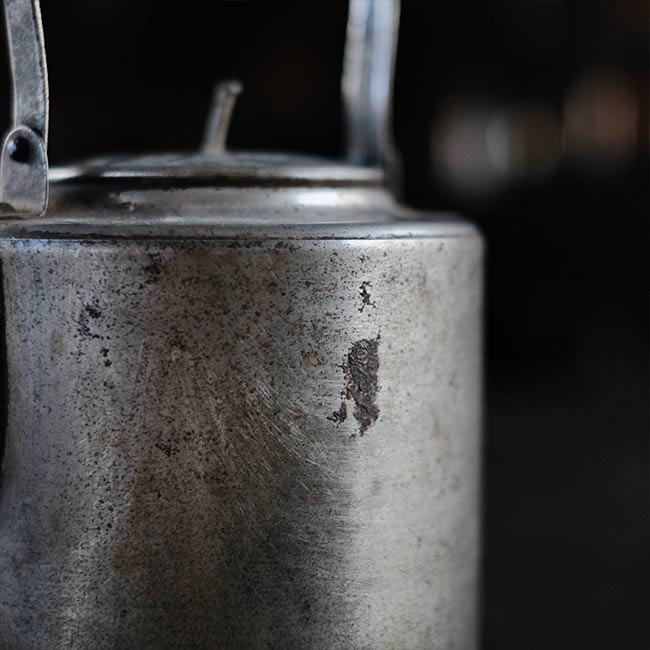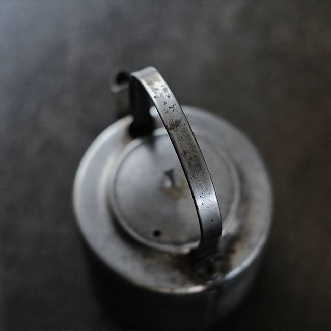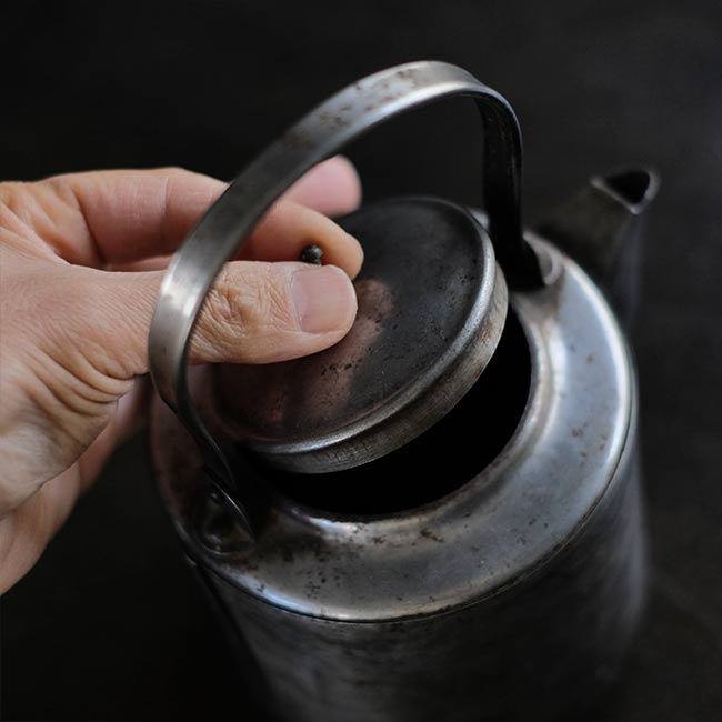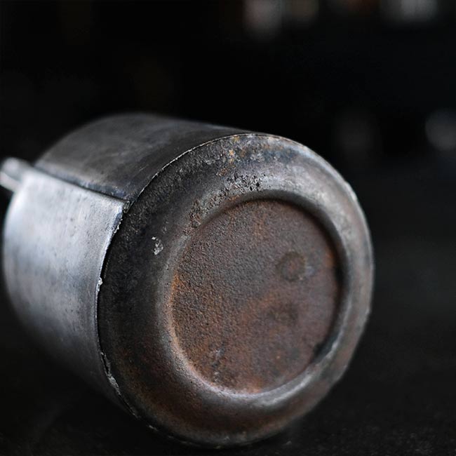 中はサビてるし、底から水が漏れるので、実用はできませんが、デザインは抜群にかっこいいのです。残念なことに。