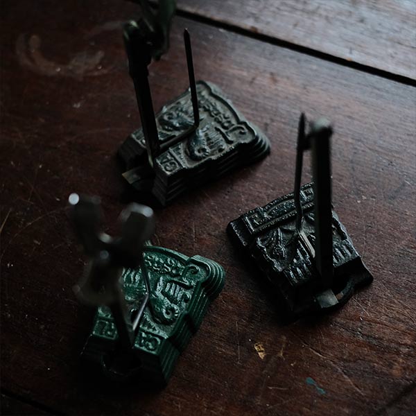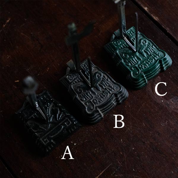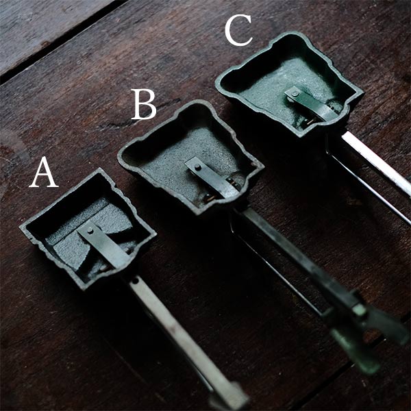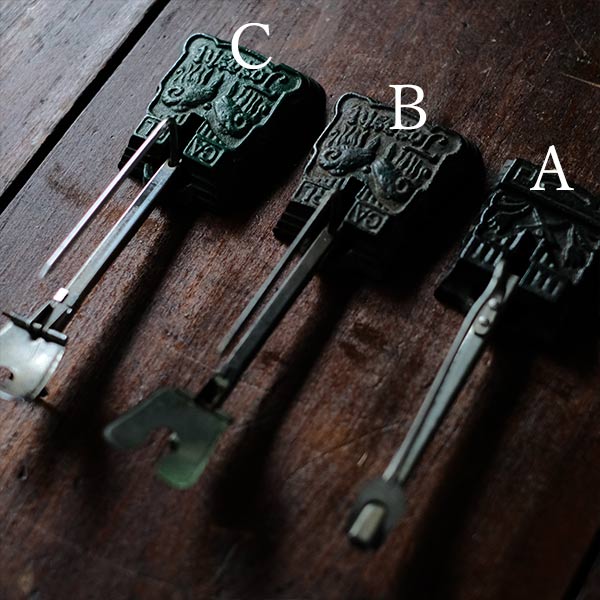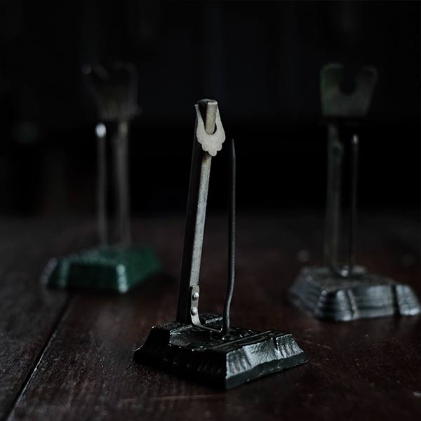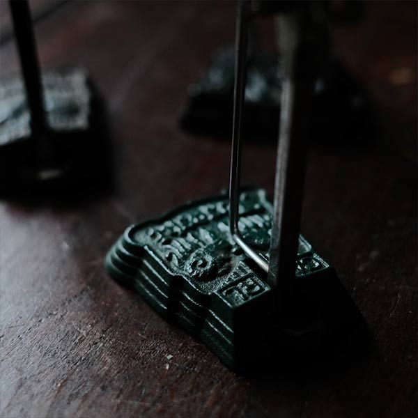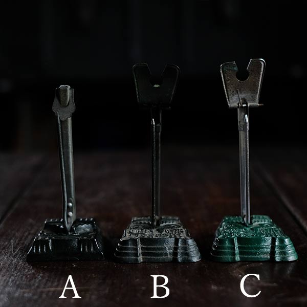 注文を手書きで伝票に書いてる飲食店は、気持ちの入った料理が出てくるような気がして好きです。その伝票をまとめておくのに使われるのが、この状差し。支柱を90度倒して、壁に掛けて使うこともできます(Bのみ、壁掛け用のフックが欠損しています)。