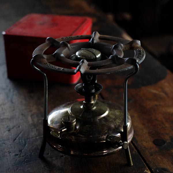 お湯を沸かしたり、調理にも使えるスウェーデン製Optimusのストーブ(バーナー)です。使用する燃料は灯油。五徳の外径は20cm弱ありますので、ヤカンはもちろん、そこそこのサイズの鍋類も安定して置くことができます。