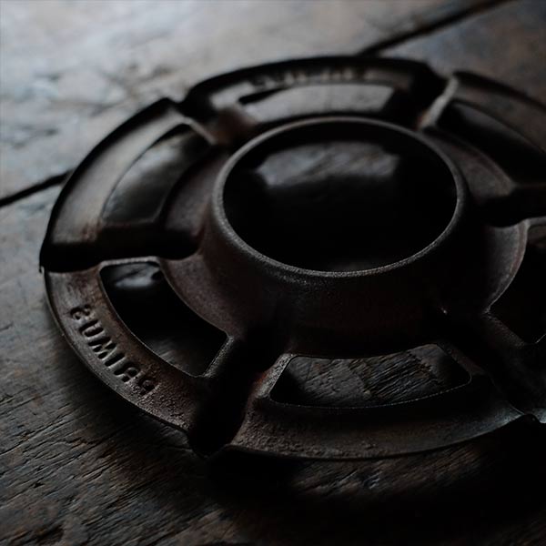 外観上は本体表面のくすみ、五徳や三脚に部分的な錆びが見受けられますが、使用に支障のあるようなダメージは見られません。なおクリーニングはしておりますが、研磨はしておりません。