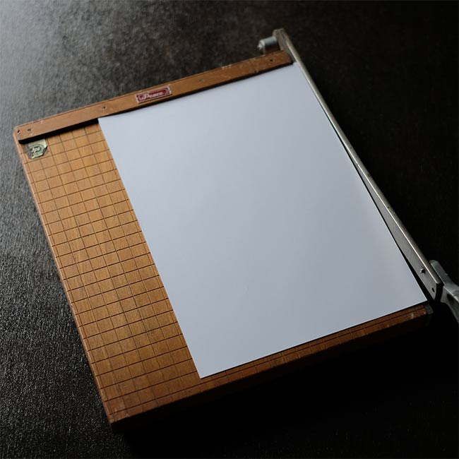 最後の写真はA4の用紙を刃の内側ぎりぎりのところにセットしたところ。カレンダーなどに使われる厚手の紙でも、10枚程度ならラクにカットできます。ただし刃は鋭いので、十分お気をつけ下さい。