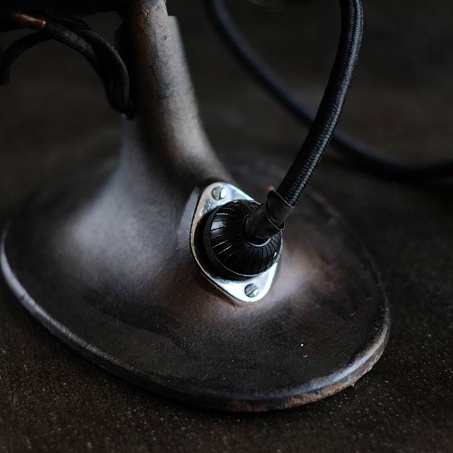 電源を入れると、側面の電球or内部の電球が点灯します(コード途中のスイッチで切り替え)。なお内部の電球は熱を持つためか、煙が出ます。またコードにもダメージが見られるのと、正常に使用できるかどうかの判断ができないため、ジャンクとしての販売となります。