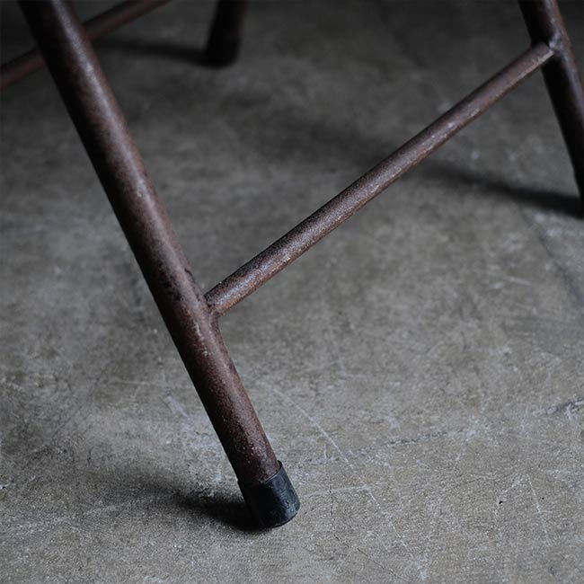 ちょっと腰掛けるのにも使えますし、鞄や植木を置く台としても。趣味の部屋やガレージなどにぜひ。サビだらけですが、ぽろぽろ剥がれてくるようなサビではありません。