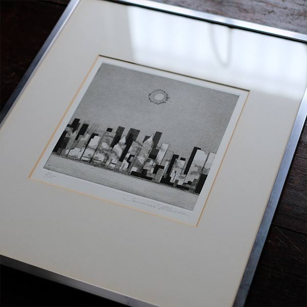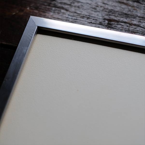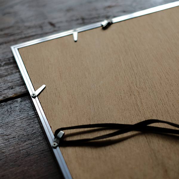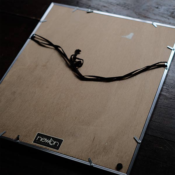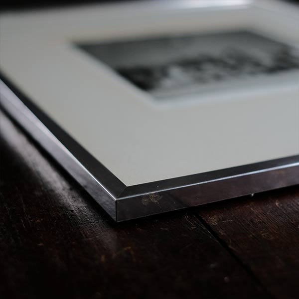 フレームはシンプルなシルバーで、小キズやくすみが若干見られます。また台紙にシミや変色が若干見受けられますが、目立つレベルではありません。