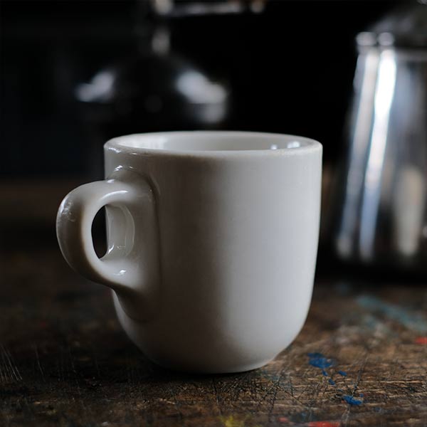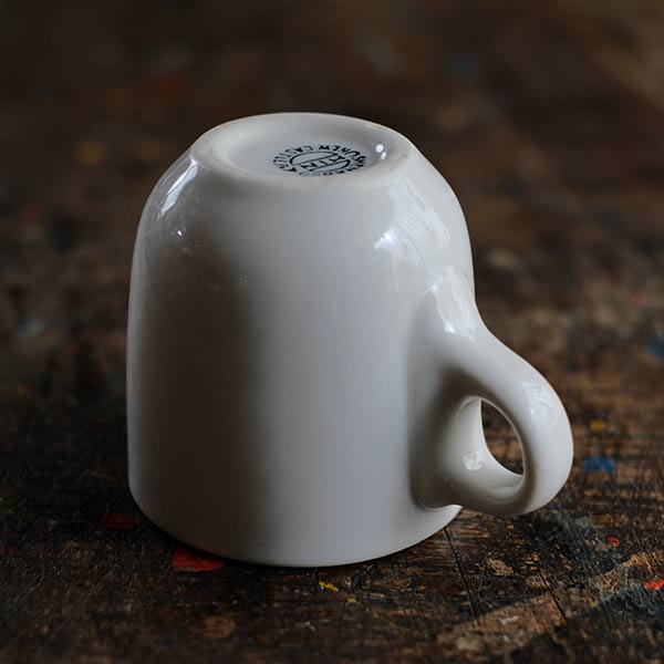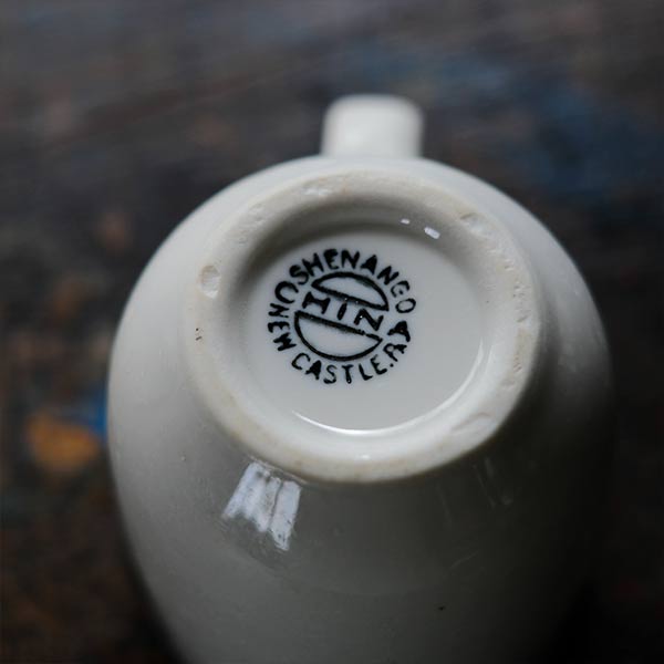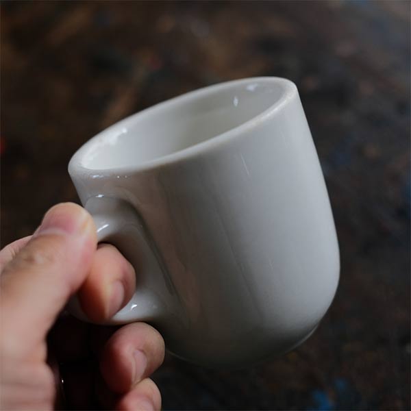 日本の湯呑みに小さな持ち手を付けたようなフォルムののShenango(シェナンゴ)のマグカップ。小ぶりに見えるかもしれませんが、容量はひたひたまでで235mlほど入ります。