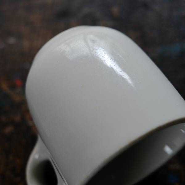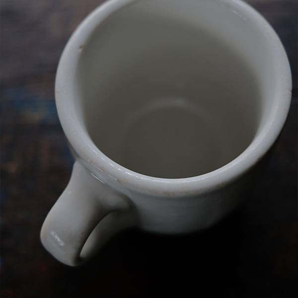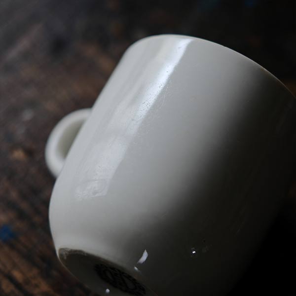 製造は1920~1940年代とやや古く、側面の小キズや底の欠け、縁に小さな欠けも見られますが、縁の欠けはさほど引っかかるレベルではなく、古いマグに慣れてるお客様でしたらさほど気にならないレベルかと思います。