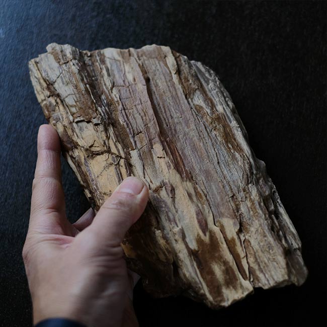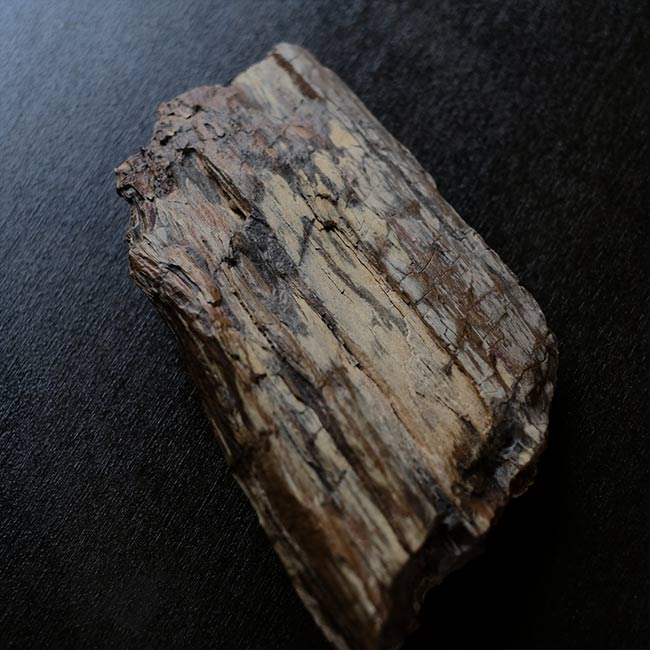 一定の条件下で数百から数千万年という気の遠くなるような時間をかけて化石化した樹木を珪化木(けいかぼく)とか木化石(ぼっかせき)と呼びます。色形は元の木の印象をとどめていますが、実際は石なので、相応の重さがあります。
