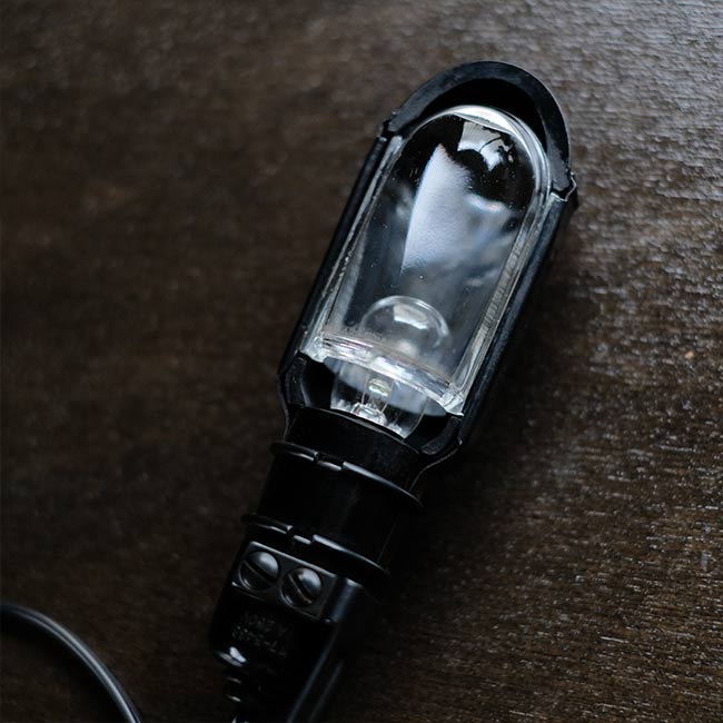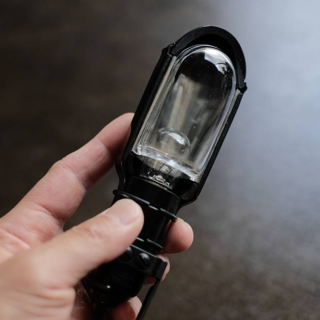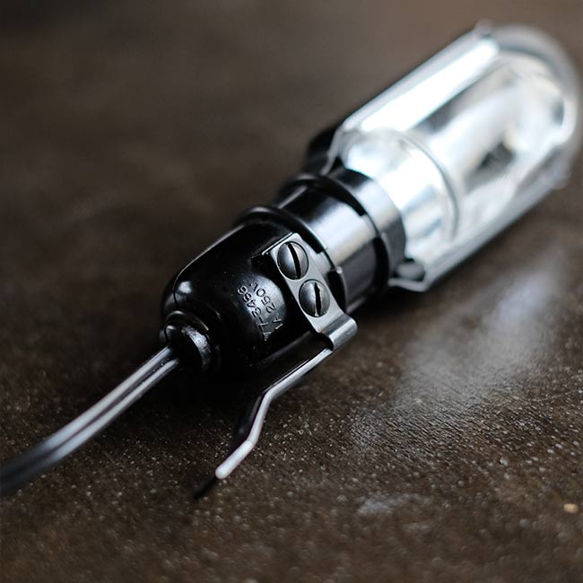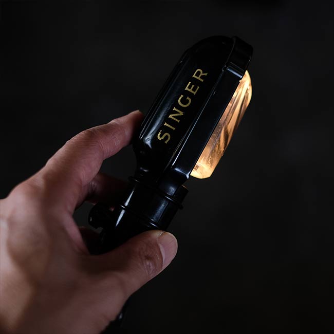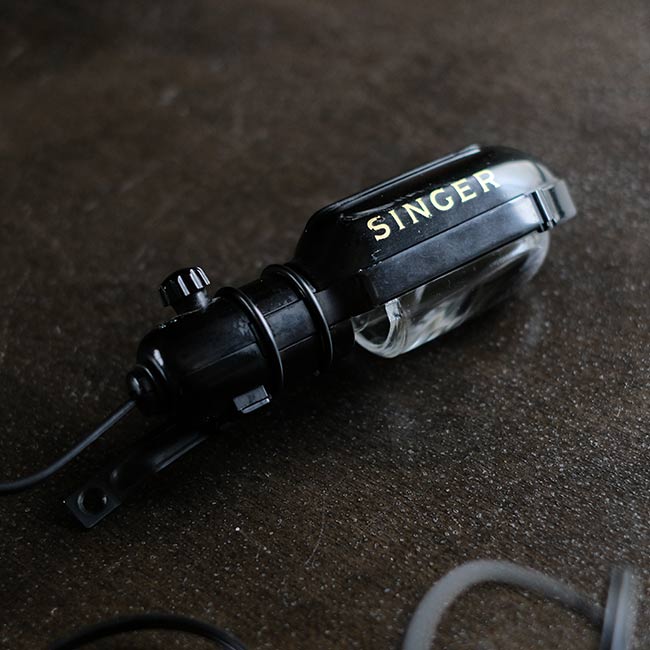 フランスはSINGER(シンガー)のミシン用ライトになります。こういったミシンに固定して使用する小ぶりなライトは日本でも作られていましたが、古い時代のSINGERにはガラスのカバーが付属していて、小さいながらも凝ったつくりをしています。