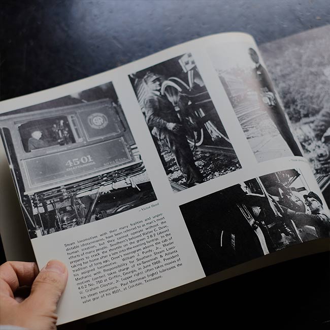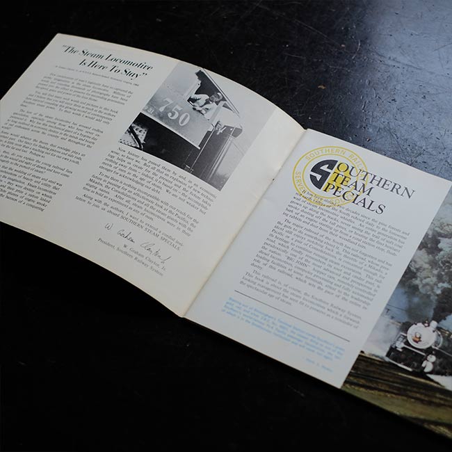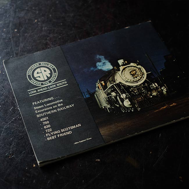 アメリカのサザン鉄道が運行していた蒸気機関車を写真とともに紹介した冊子。1970年発行。文章は英文で、写真はモノクロが中心となりますが、写真がとても良く、またかなりの枚数が掲載されていますので、写真集をみるような気軽さで楽しんでいただけるかなと。
