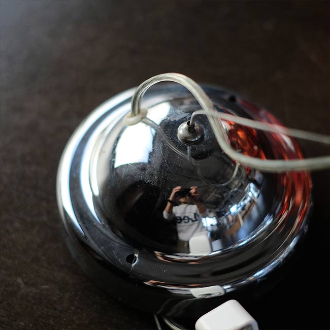 表面のくすみが落としきれませんでしたが、割れなどは見られません。使用する電球はE26で、昼光色の大きめの電球で撮影。電球を交換する際は、ネジをゆるめて底部を外します。