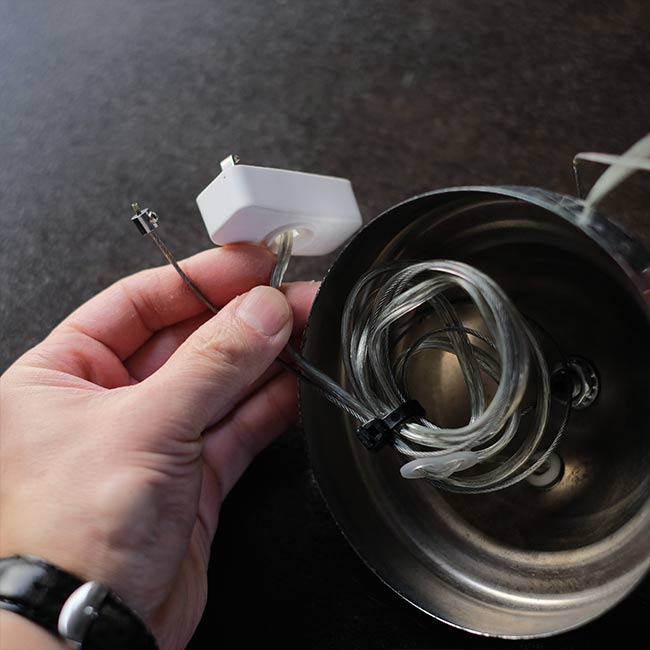 重量が2キロ弱あるため、付属の取り付け金具をご使用下さい。プラグアダプターを使って置き型のライトにするのもありかと思います。