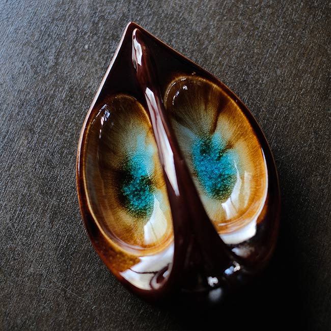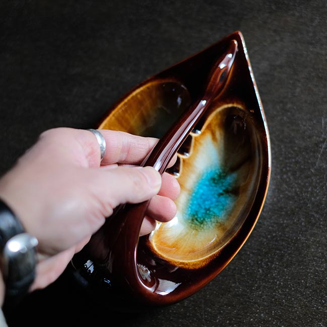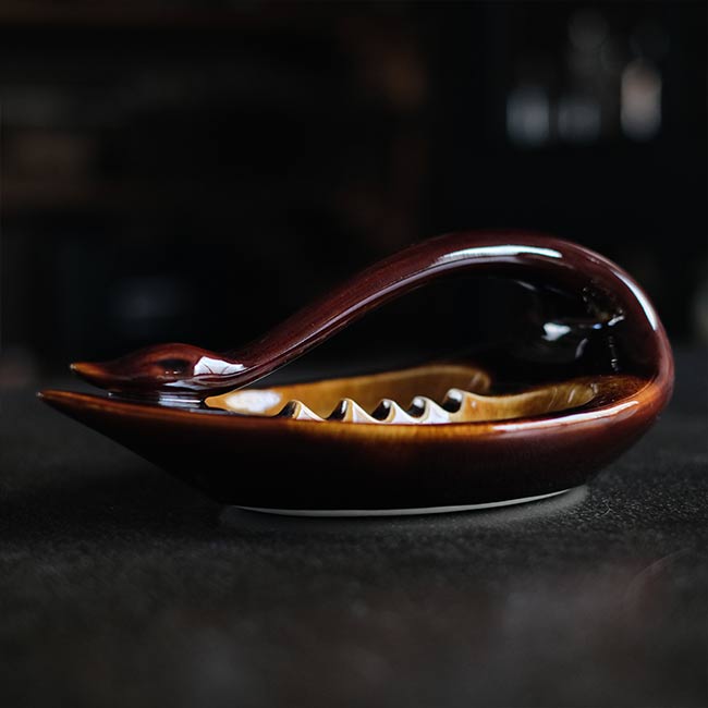 白鳥を模した灰皿になります。デフォルメのし方が絶妙で、釉薬の色味がまた良く、国もメーカーもわかりませんが、とても良い品に巡り会えました。