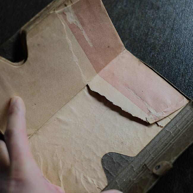 ケースは紙製で、劣化がありますので、ボタンを外す際などやさしく扱っていただけたらと思います。