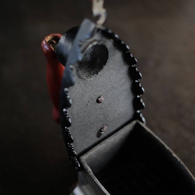 鉄製のためサビサビの状態がほとんどですが、本品は塗装が十分に残ったグッドコンディション。炭の付着が見られなかったので、使用頻度はかなり低かったか、未使用の可能性もあるかなと。