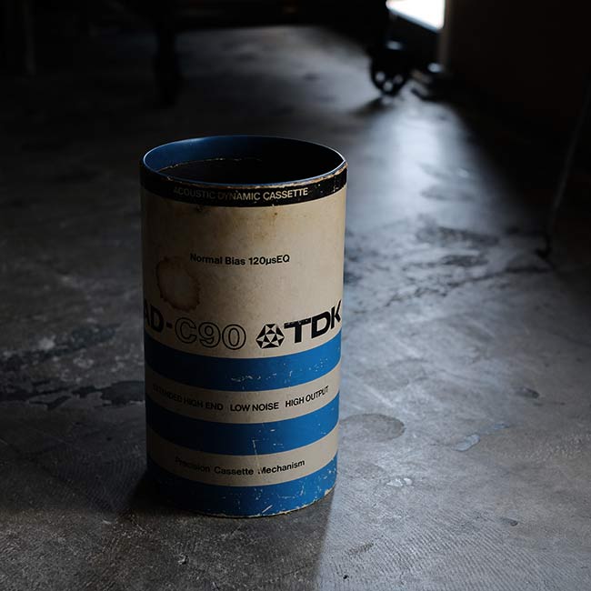 TDKのカセットテープのデザインを模した。グッドデザインなクズカゴ。おそらく販促用に作られたのでしょう。このカセットテープの発売が1977年なので、本品もその頃のものと想像します。