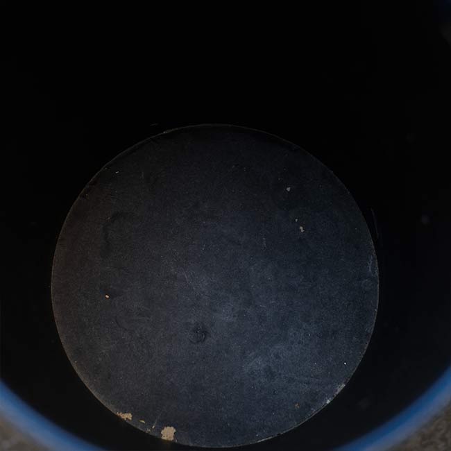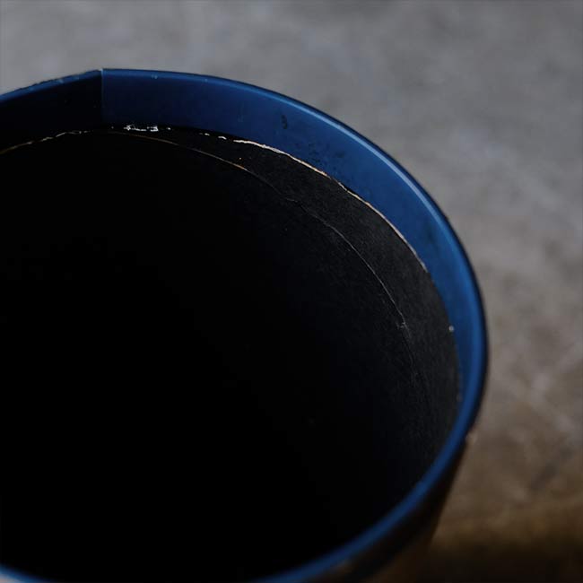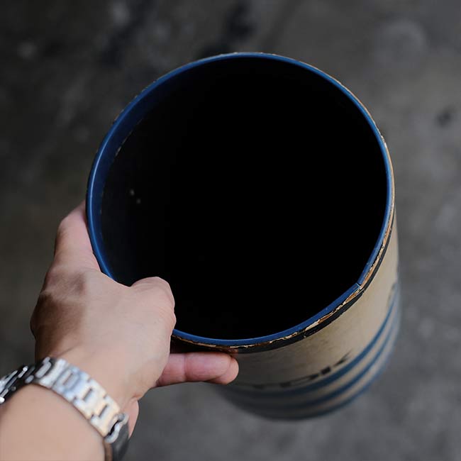 大きさは直径16.5cmほどのコンパクトなサイズ感。傷やシミ、薄汚れが残りますが、使用に支障のあるようなダメージではありません。クズカゴとして、あるいは細長いものの収納にも使えます。