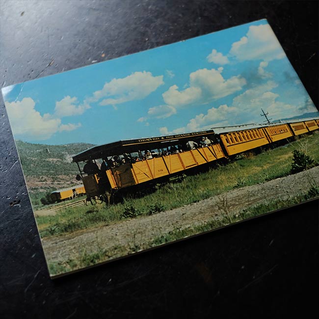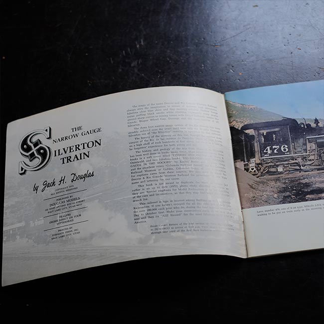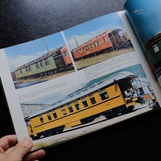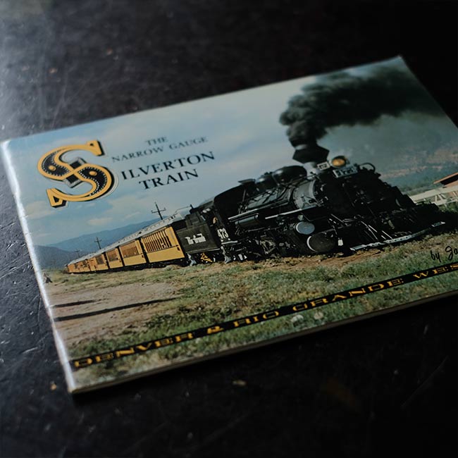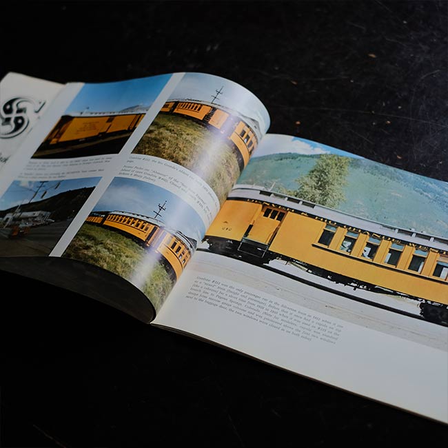 コロラド州デンバーからユタ州ソルトレイクシティの間の主に山岳地帯を走るデンバー・リオグランデ・ウェスタン鉄道を写真を中心に紹介した冊子。1870年設立のこの会社はナローゲージ(幅の狭い列車)が特徴で、主に石炭や鉱物を輸送していたそうです。