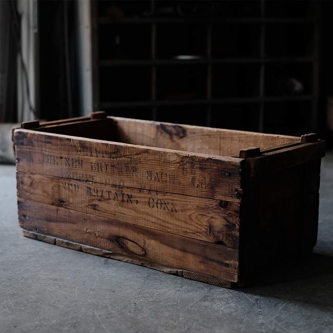 アメリカより、工具からトラクターまで幅広く製造していたThe New Britain Machine Companyの木箱になります。