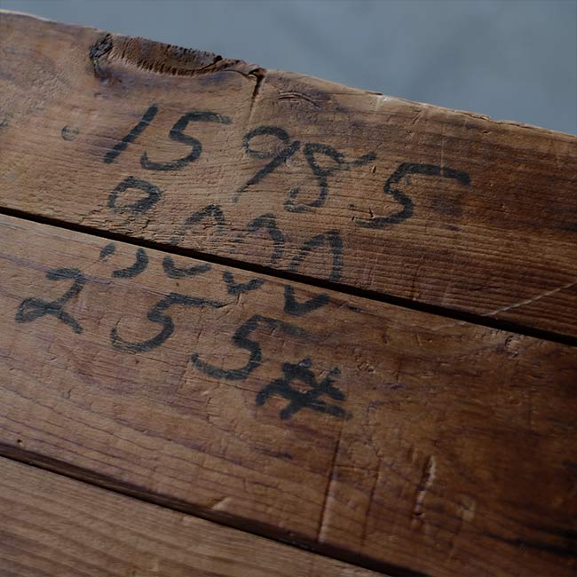 側面は片側にメーカーのスタンプが、反対側には手書きの数字が書き込まれています。シンプルなレタリングと、持ち手を付けたことによる使いやすさが個人的なおすすめポイント。