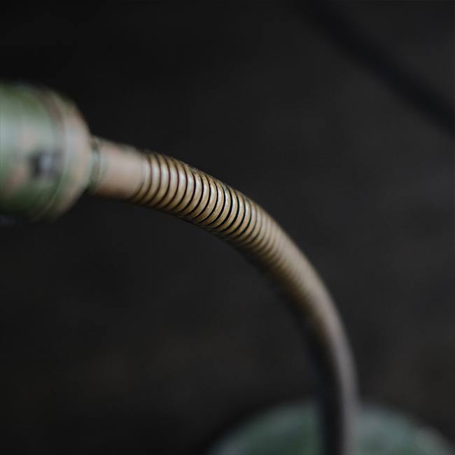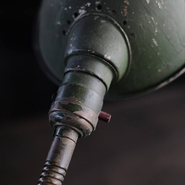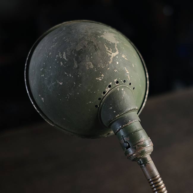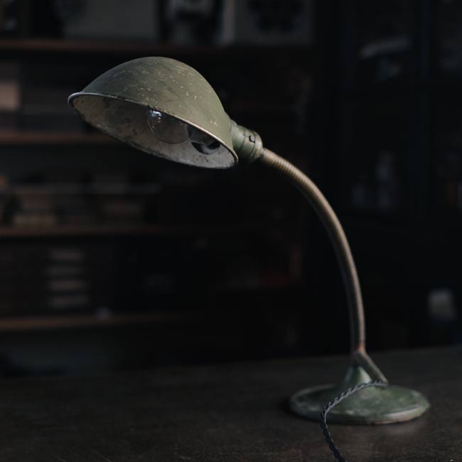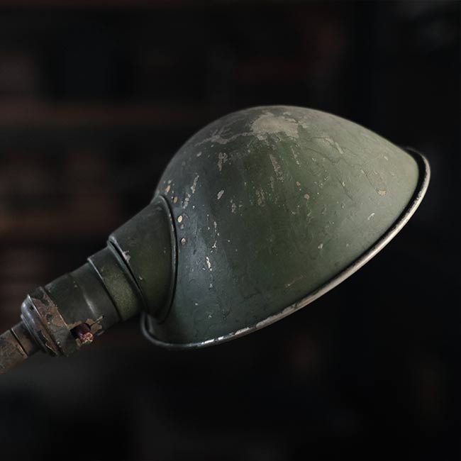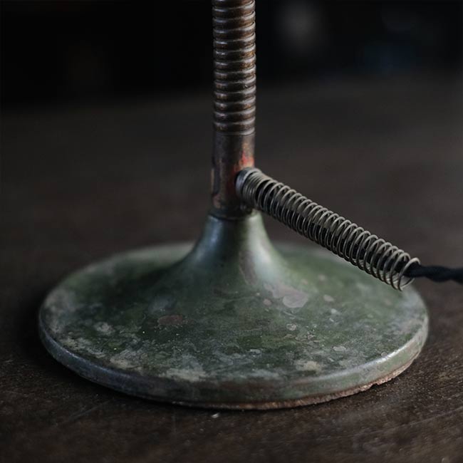 アメリカより、メーカー不明のデスクランプ。極めてシンプルなデザインになりますが、シェードとベースの経年変化が素晴らしく、見ていて飽きません。もう売れなくたっていいです。