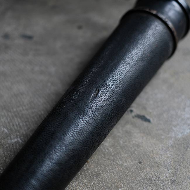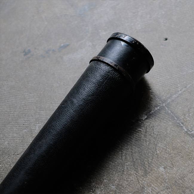 筒身は真鍮製で、合皮のような模様の入ったものが巻かれています。倍率は不明ですが、手元のリングを回すことで調節が可能(ただし固いです)。遠くのものもきちんと確認ができ、望遠鏡としての機能に問題はなさそうです。