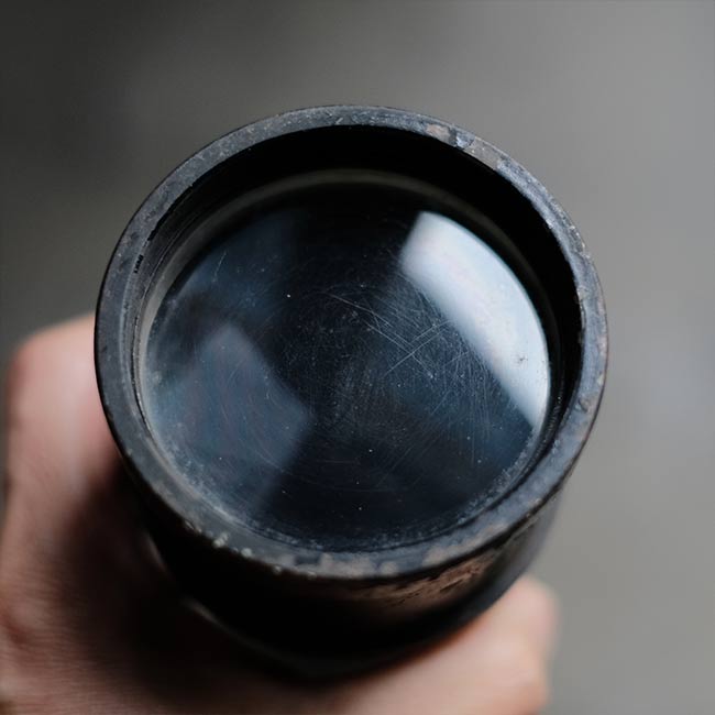 ただしレンズに曇りが見られる他、筒身には傷やくすみ、部分的な塗装の剥がれなどが見られますことをご了承下さい。