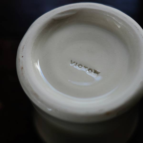 このマグカップは、Victorが閉鎖する1980年代の後半まで製造が続けられた、最もベーシックなモデルとなりますが、その中でもフチにラインの入った希少なシリーズ。底の刻印はシリーズ後期のもので、年代的には1970~1980年代頃の製造と推測されます。