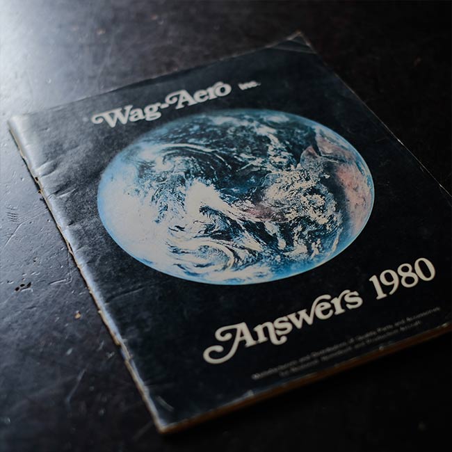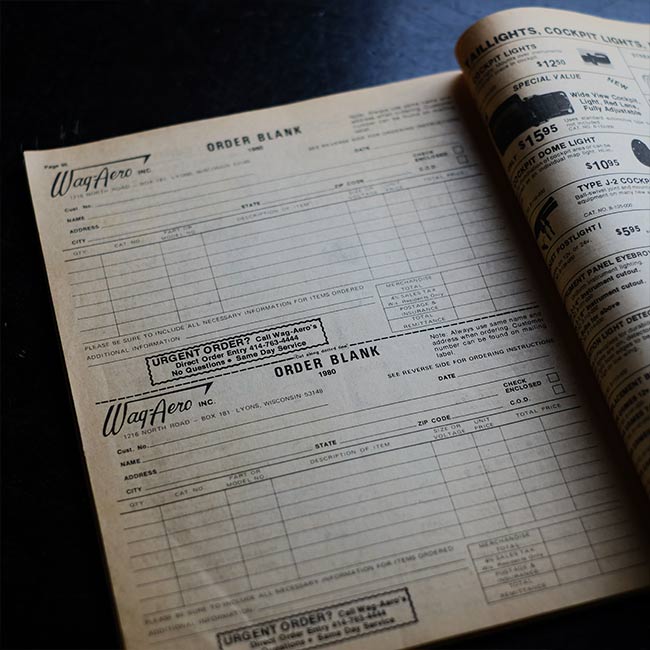 表紙がWhole Earth Catalog風ですが、アマチュア向けの航空機のキットやパーツ類を製造・販売するWag-Aero社の通販カタログになります。「1980」は発行された年でしょう。